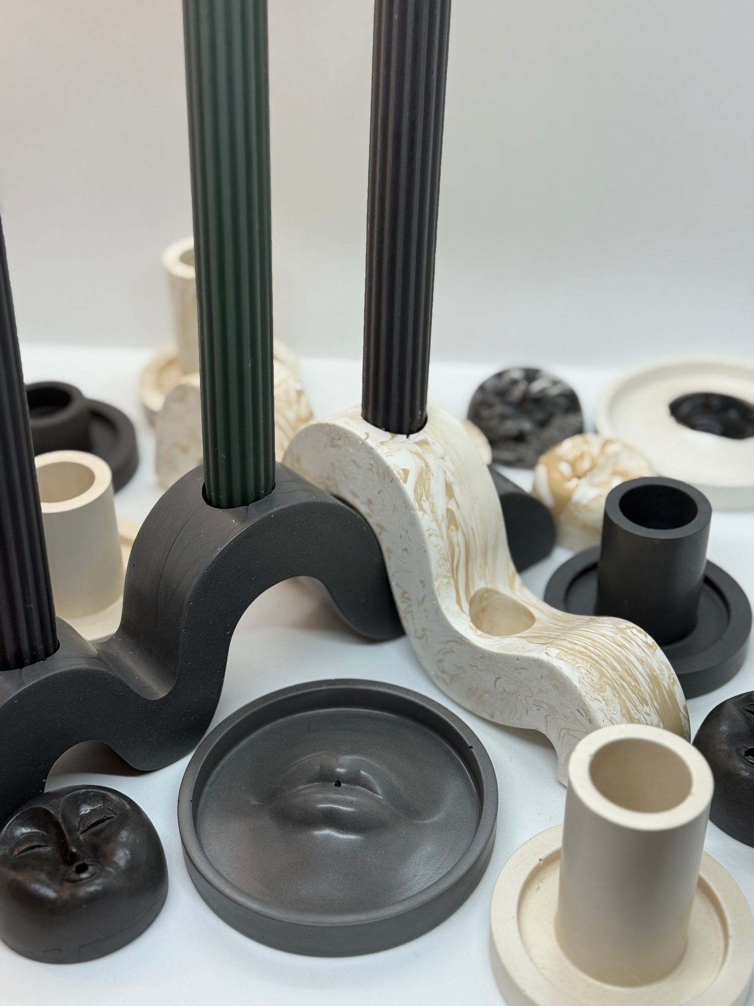 Jesmonite žvakidės ir smilkalų laikikliai – rankų darbo aksesuarai jaukiai atmosferai. Ekologiška medžiaga, unikalūs spalvų deriniai ir minimalistinis dizainas. Idealus meditacijai, relaksacijai ar kaip stilingas dekoratyvinis akcentas jūsų namams.