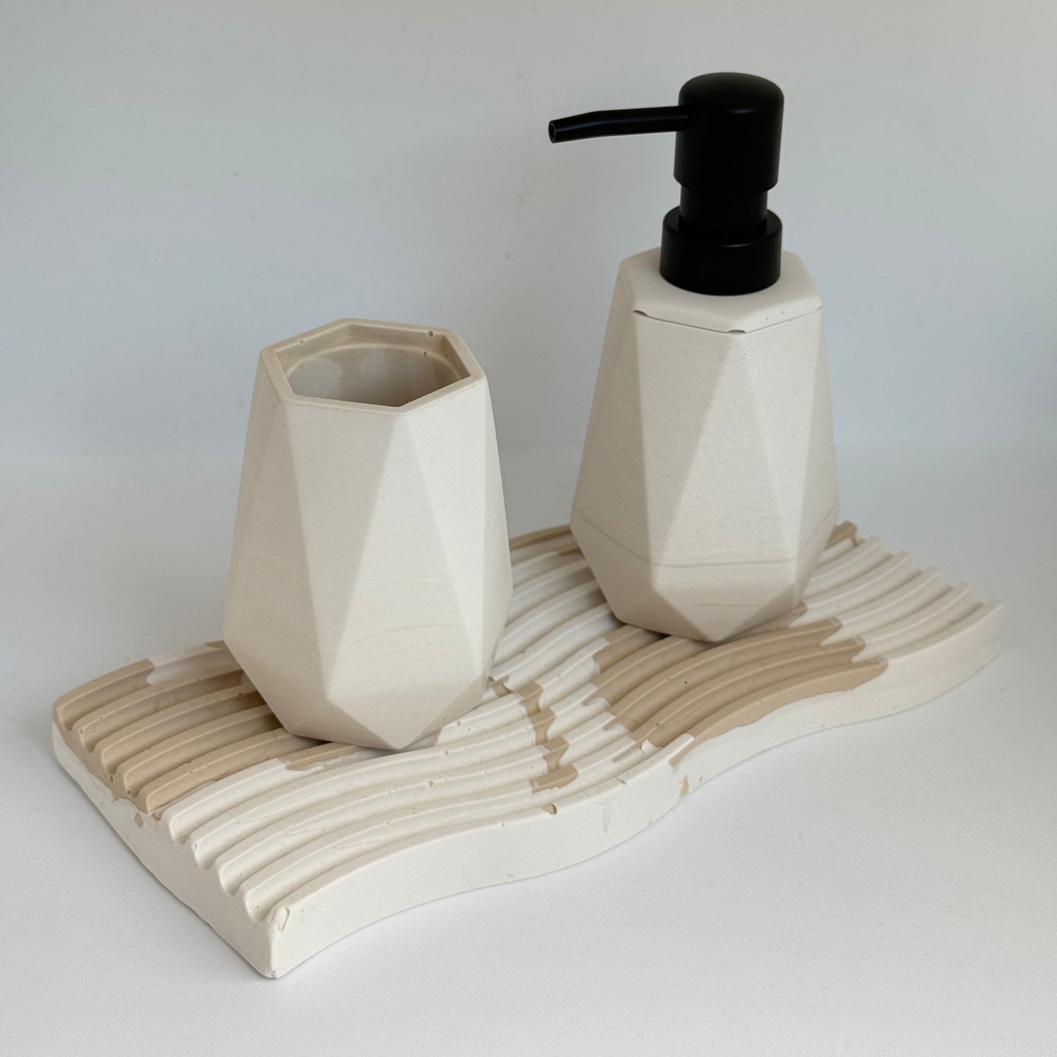 Jesmonite vonios aksesuarai – elegantiška tvarka jūsų vonios kambaryje. Rankų darbo, ekologiška medžiaga, unikalūs dizainai. Dozatoriai, laikikliai ir padėkliukai su premium pojūčiu.