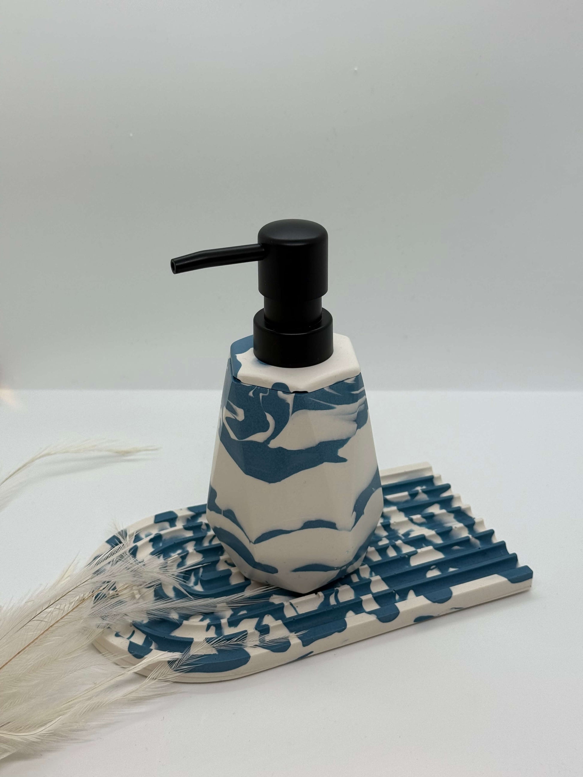 Elegantiškas ir modernus muilo dozatorius, dekoruotas unikalaus jūrinio rašto motyvu. Mėlynų bangų imitacija ant šviesaus pagrindo suteikia gaminiui išskirtinumo ir ramybės pojūtį, todėl jis puikiai dera vonios kambaryje ar virtuvėje.