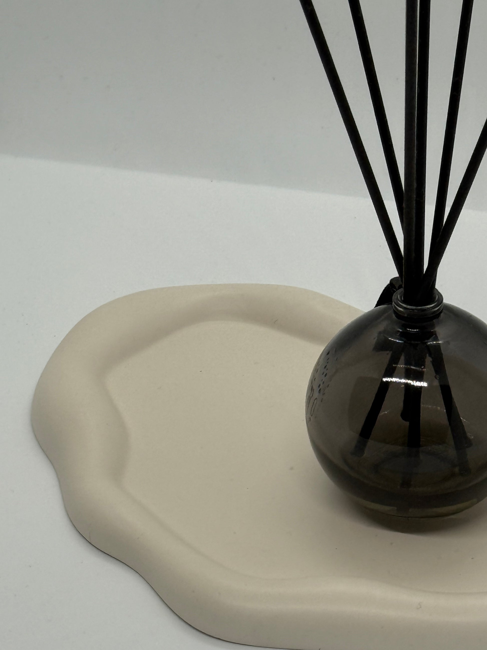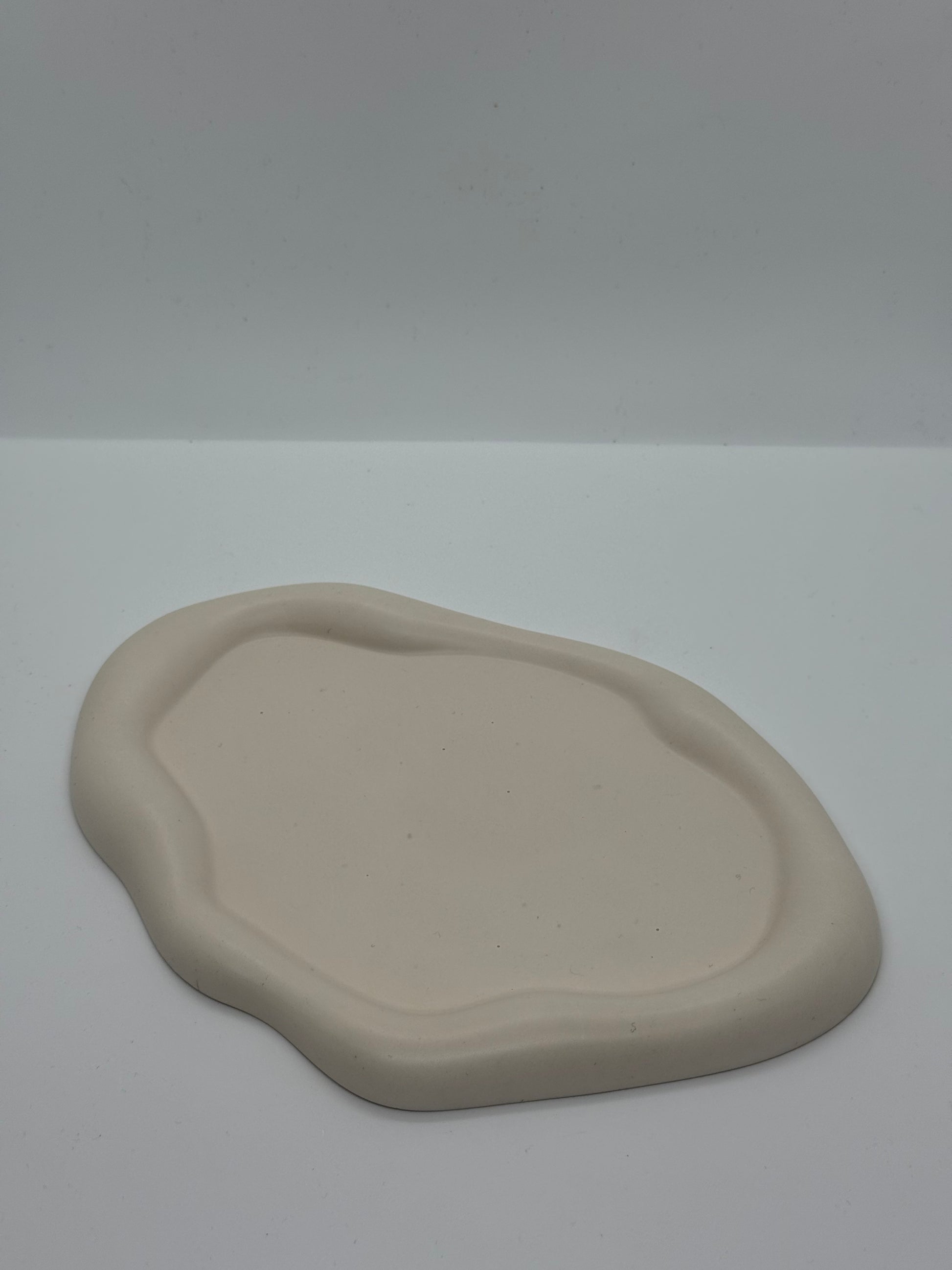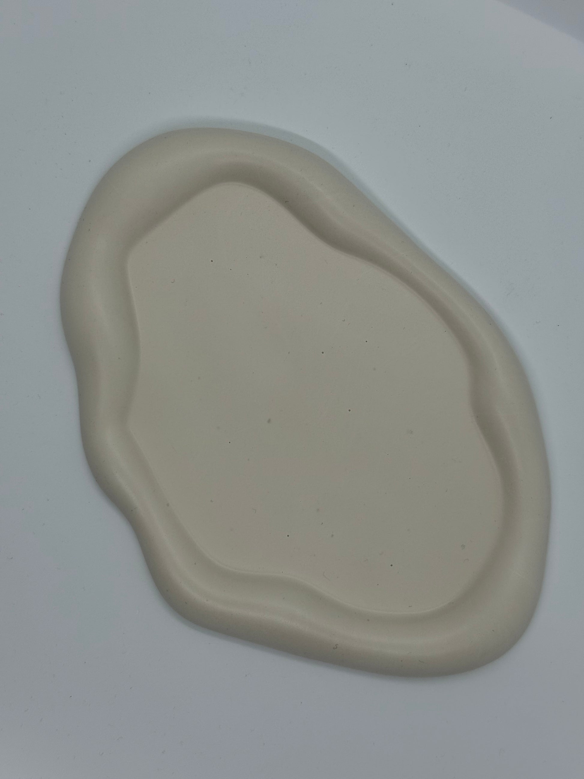 Minimalistinis, organiškos formos padėkliukas. Jo natūrali šviesiai kreminė spalva ir minkštos, nelygios kraštų formos suteikia jaukumo ir ramybės pojūtį, todėl šis padėkliukas puikiai dera tiek moderniame, tiek natūralių tonų interjere.