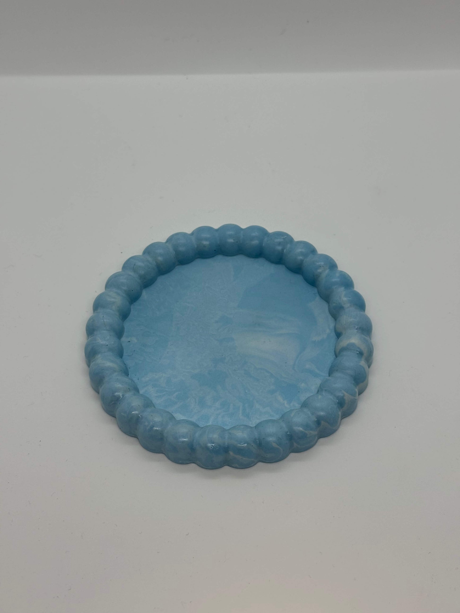 Šis ryškiai melsvo atspalvio padėkliukas su subtiliu marmuriniu raštu suteiks erdvei lengvumo, gaivos ir modernios estetikos. Unikalus paviršiaus sūkurys pripildo padėkliuką gylio, todėl kiekvienas gaminys atrodo išskirtinai.