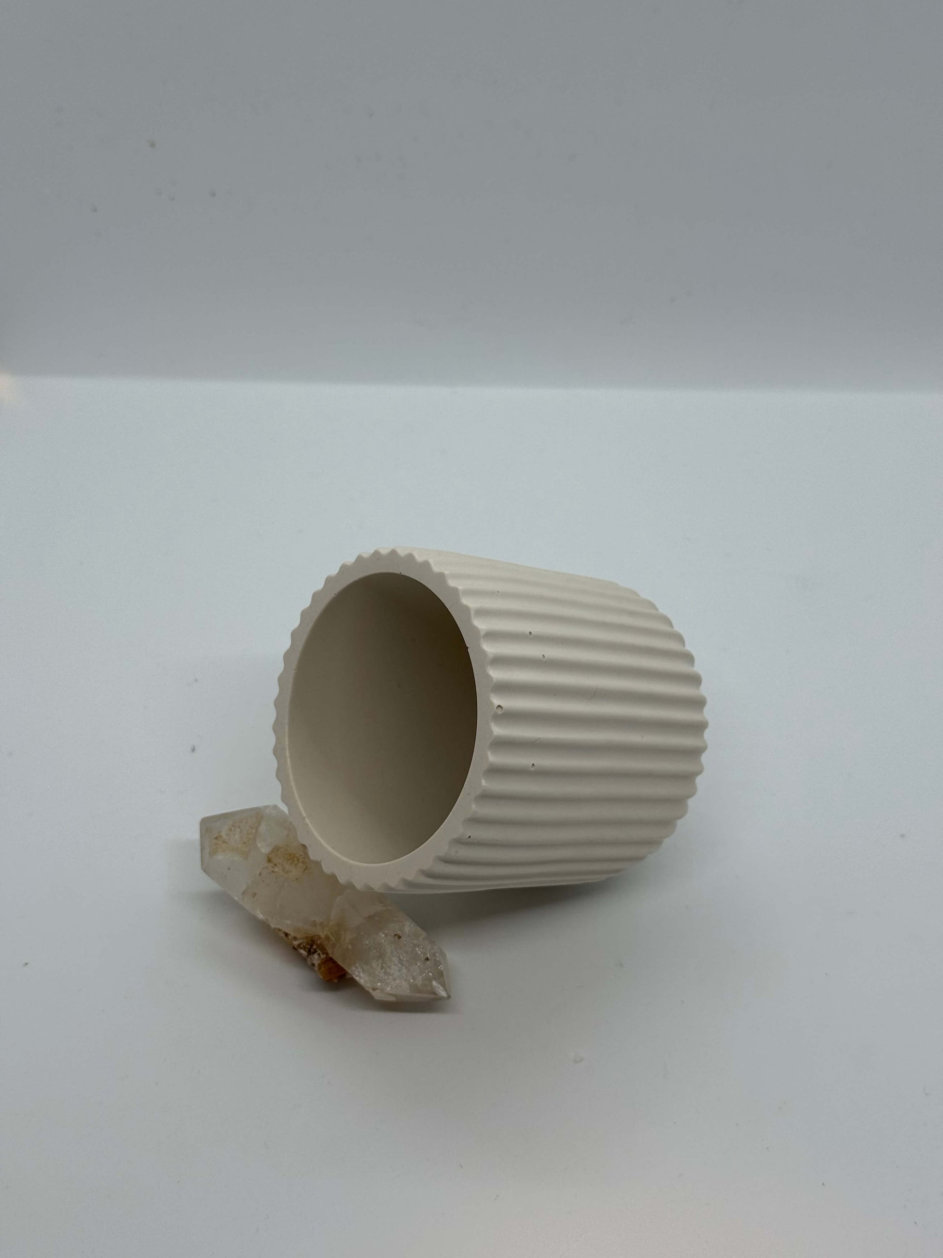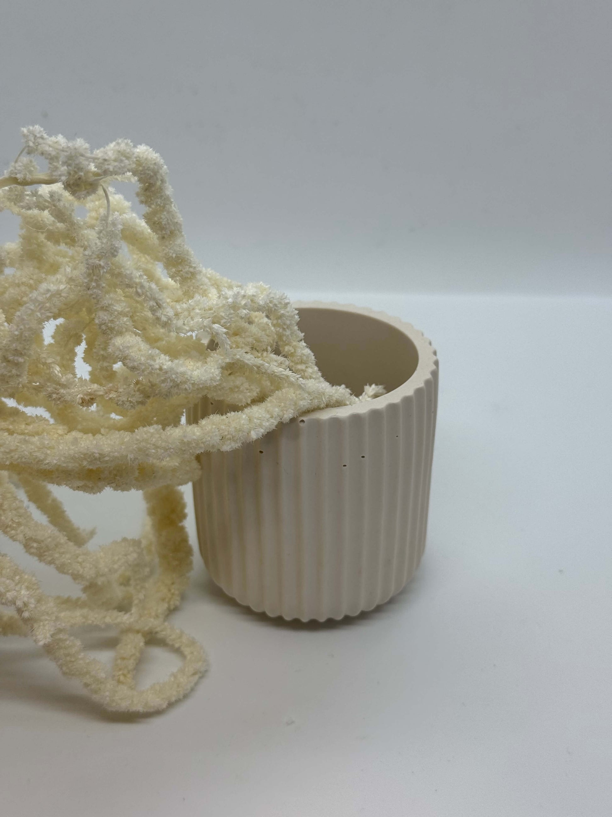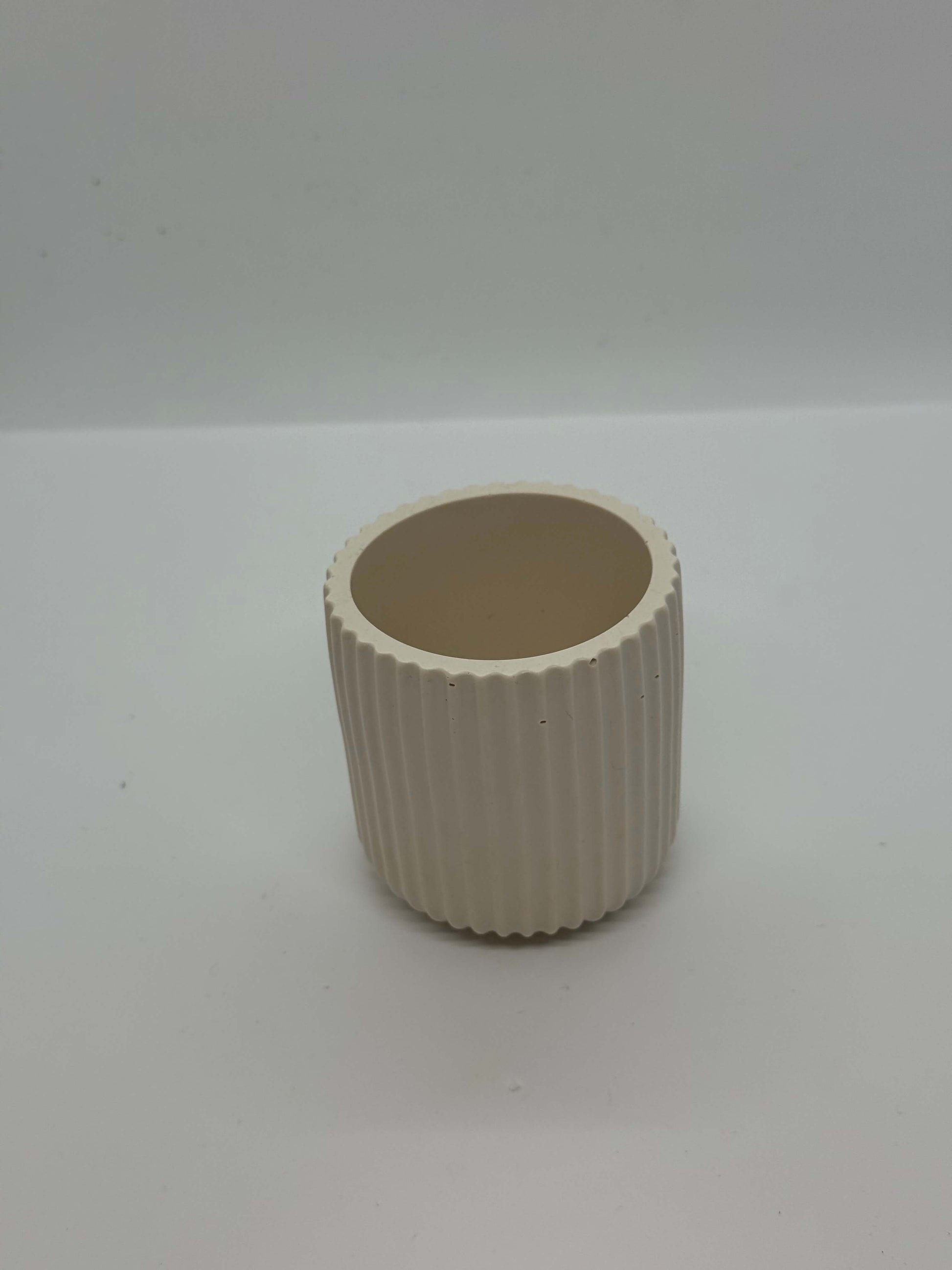 Subtilaus, švelniai kreminio atspalvio indelis su vertikaliomis griovelio faktūromis suteikia minimalistinį, modernų įvaizdį.