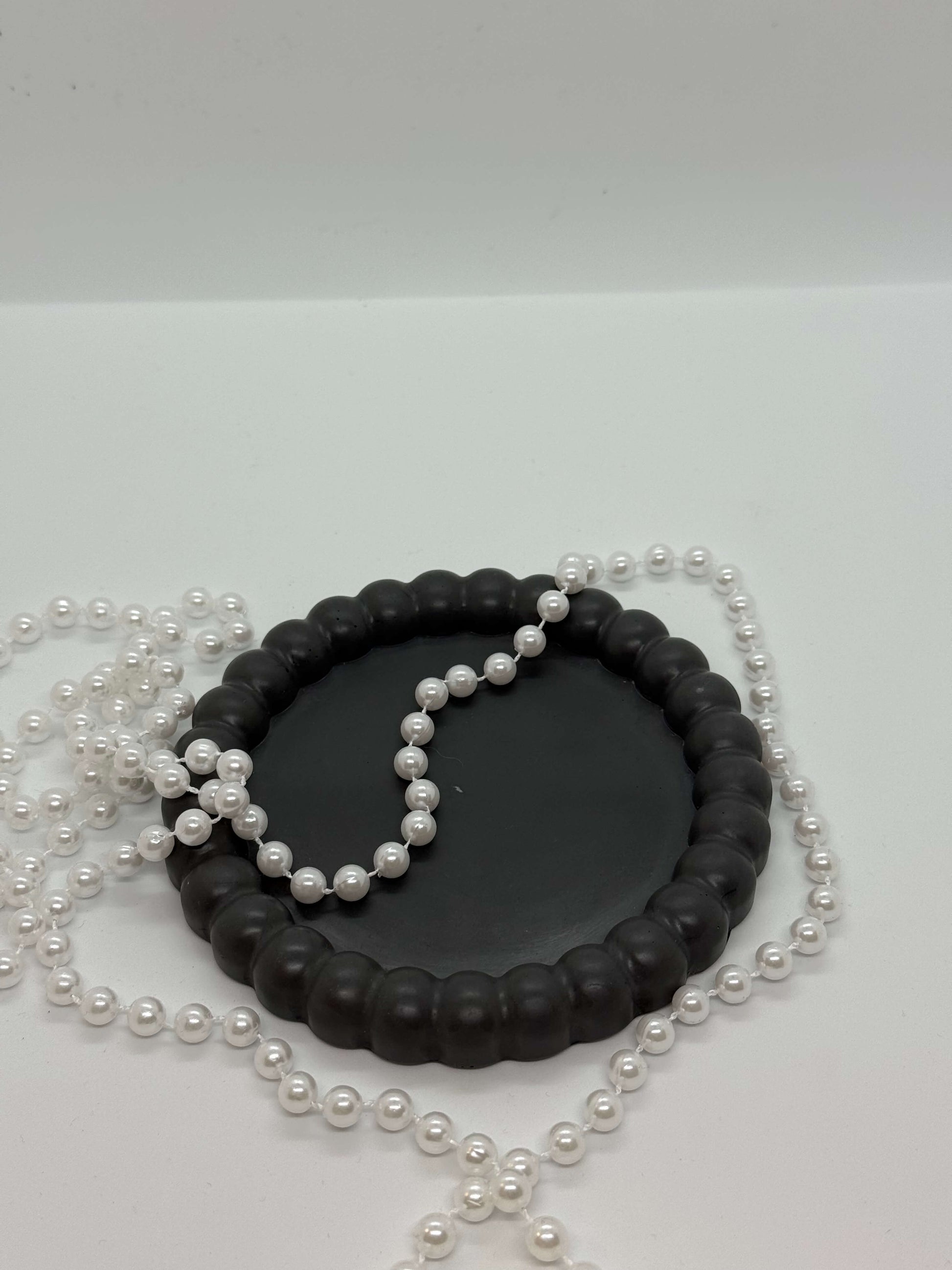 Šis juodos spalvos padėkliukas suteiks jūsų erdvei jaukumo ir estetikos. Jo minkštų, banguotų kraštų dizainas išsiskiria subtilumu ir puikiai dera su minimalistiniu ar natūraliu interjeru.