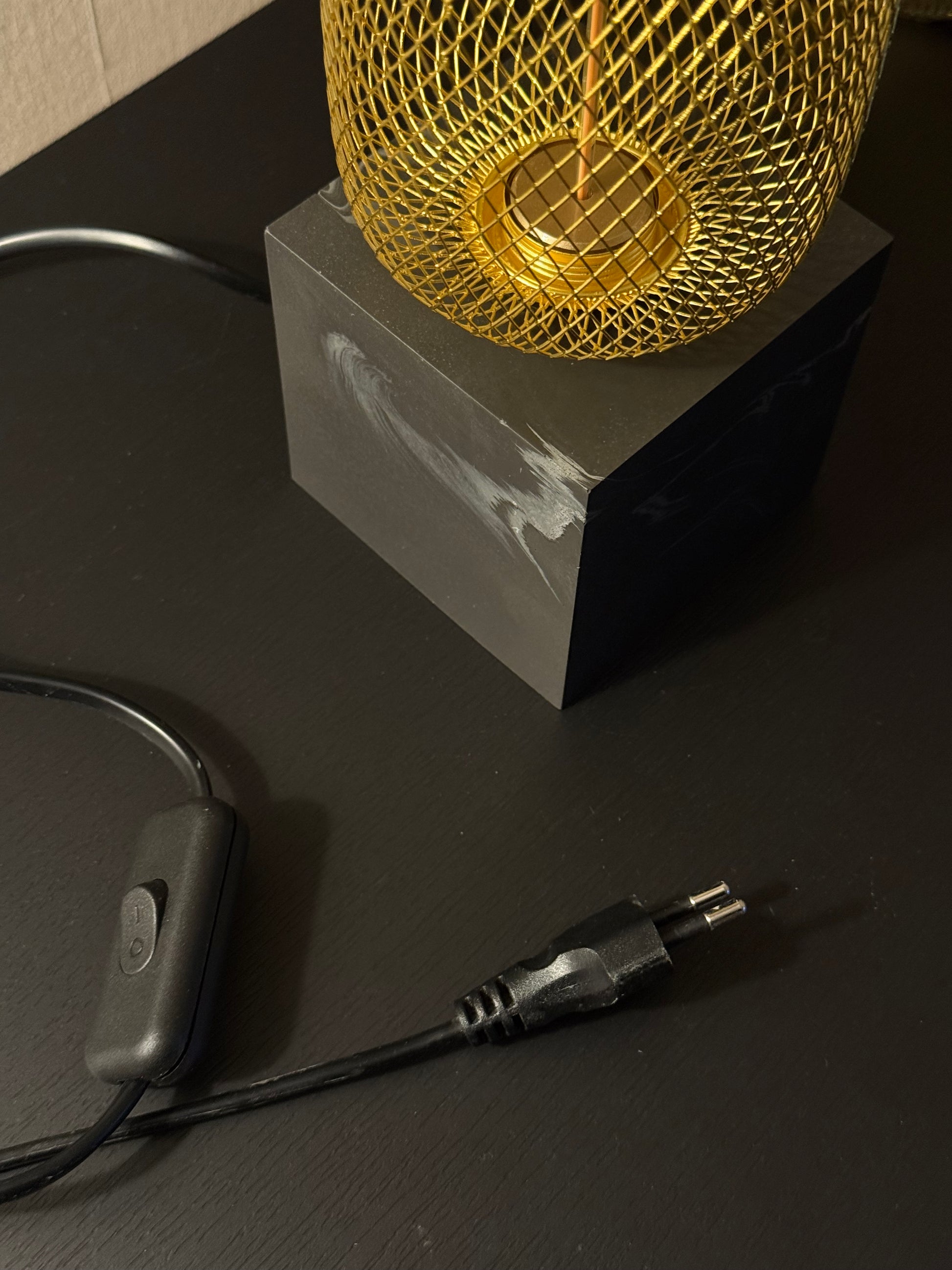 Ši rankų darbo stalinė lempa – tai modernus akcentas, kuriame susijungia minimalizmas, šiluma ir charakteris. Lempos pagrindas pagamintas iš jesmonite – tvirtos, ilgaamžės ir vizualiai estetiškos medžiagos, pasižyminčios subtilia akmens tekstūra. Kiekvienas gaminys yra unikalus, su natūraliais raštais ir švelniais spalviniais niuansais.