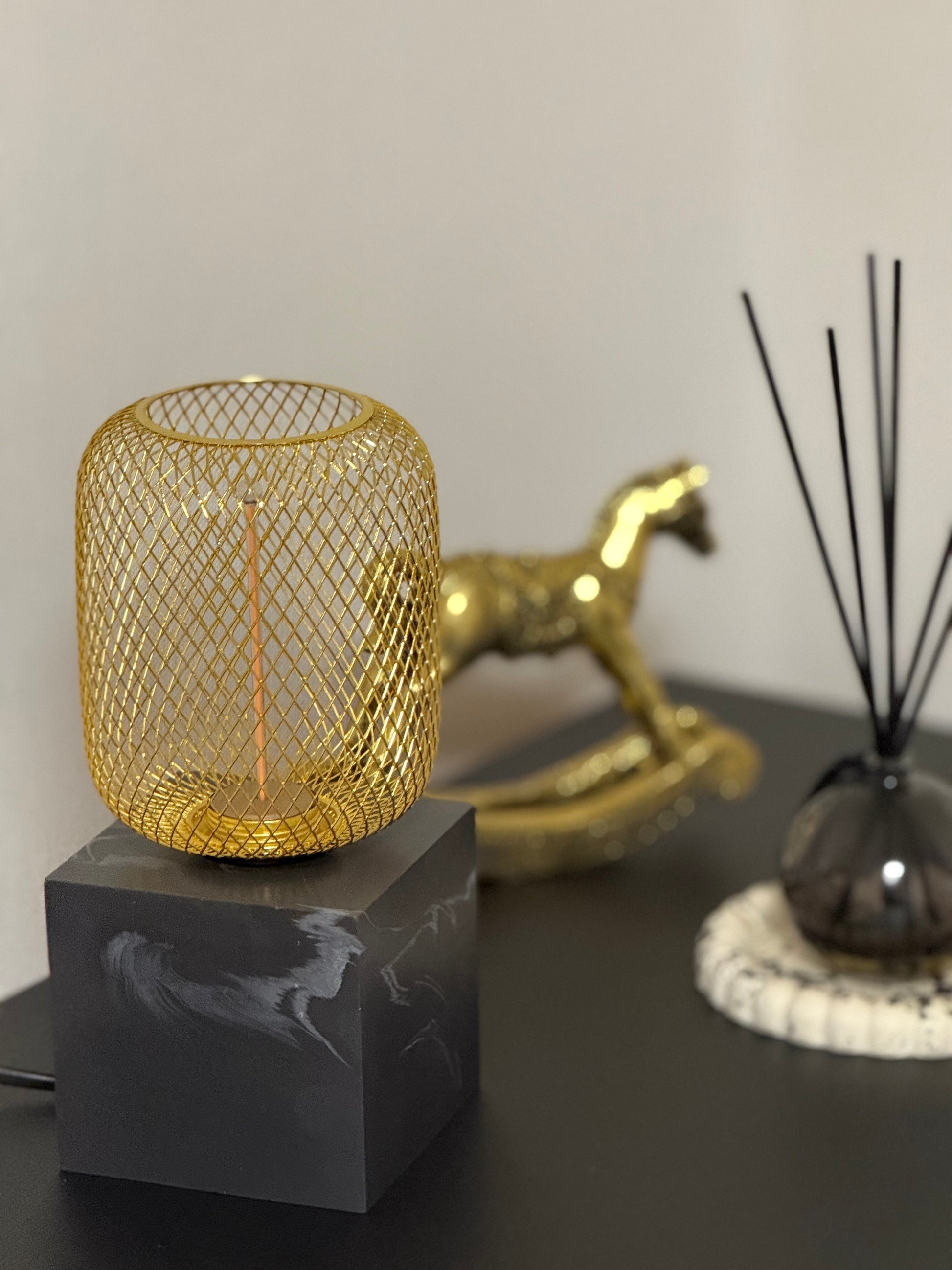 Auksinės spalvos metalinis gaubtas sukuria jaukią, minkštą šviesą, kuri gražiai pasklinda erdvėje ir suteikia interjerui ramybės bei šilumos pojūtį. Lempa puikiai tiks svetainei, miegamajam, prie lovos ar kaip akcentinis dekoro elementas ant komodos ar lentynos.