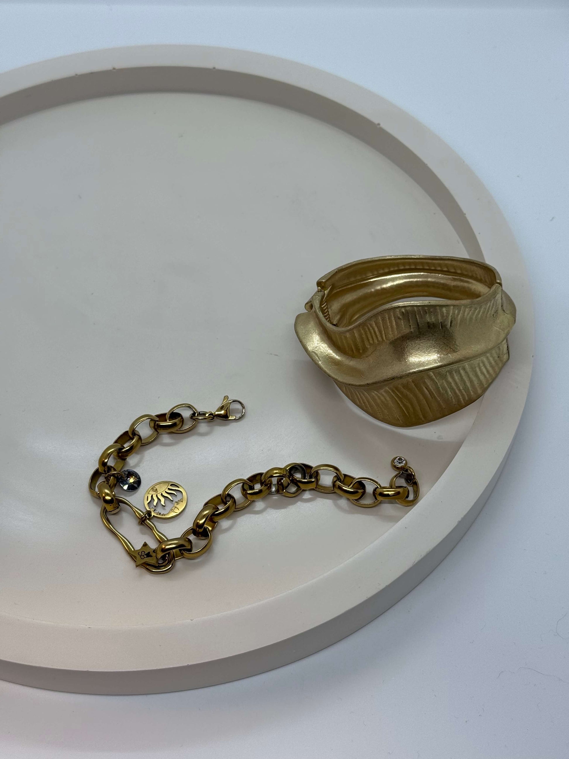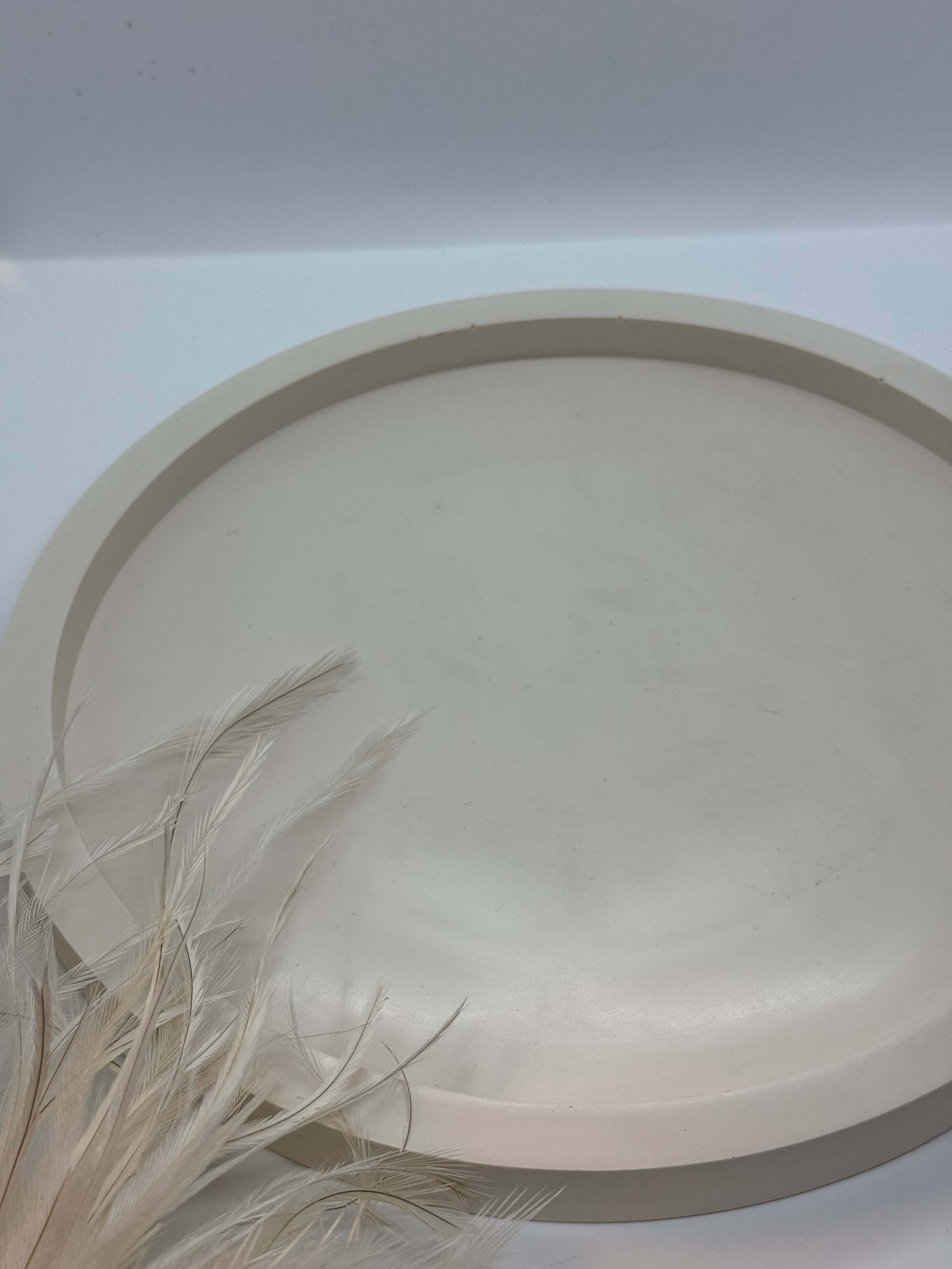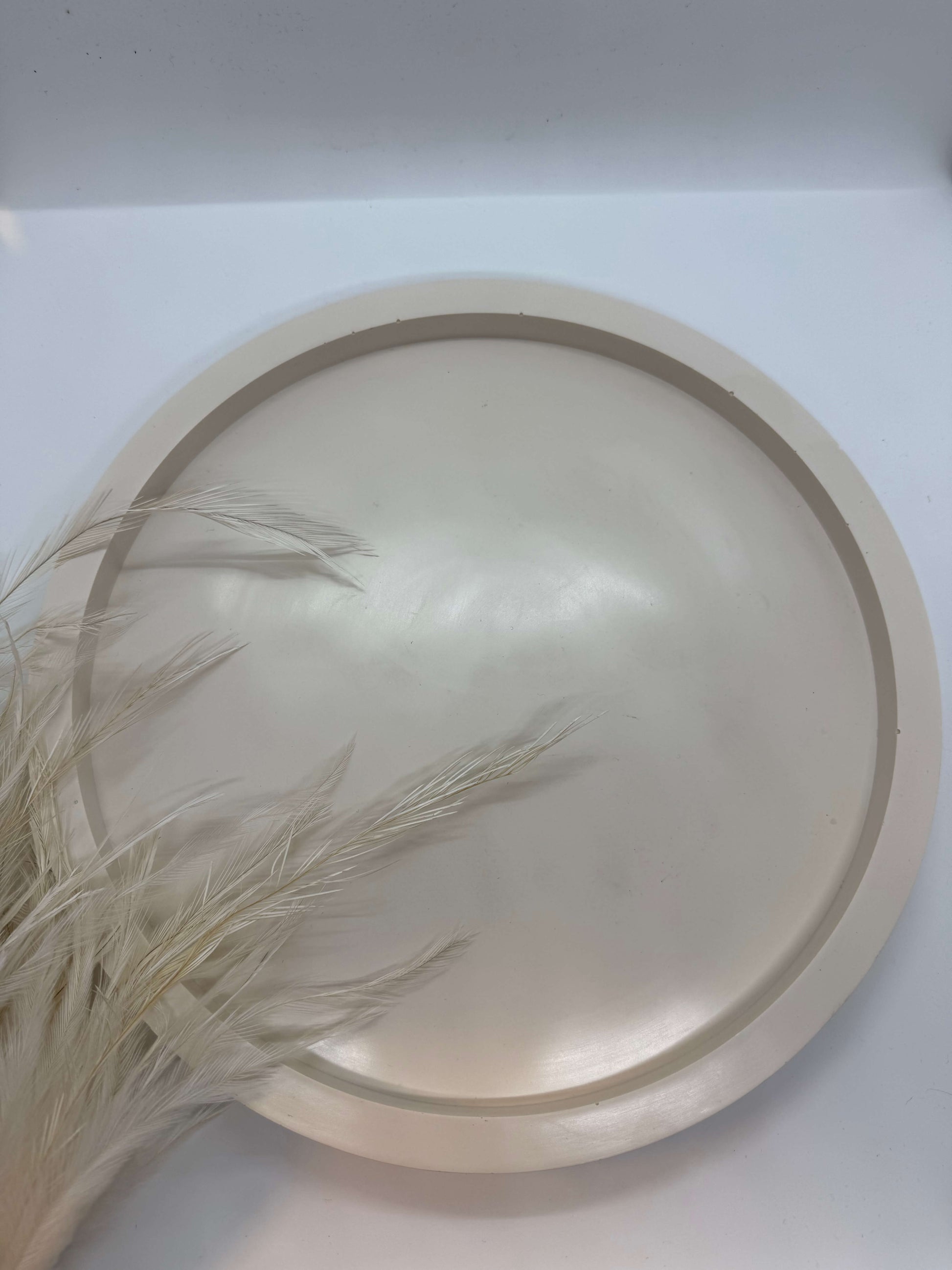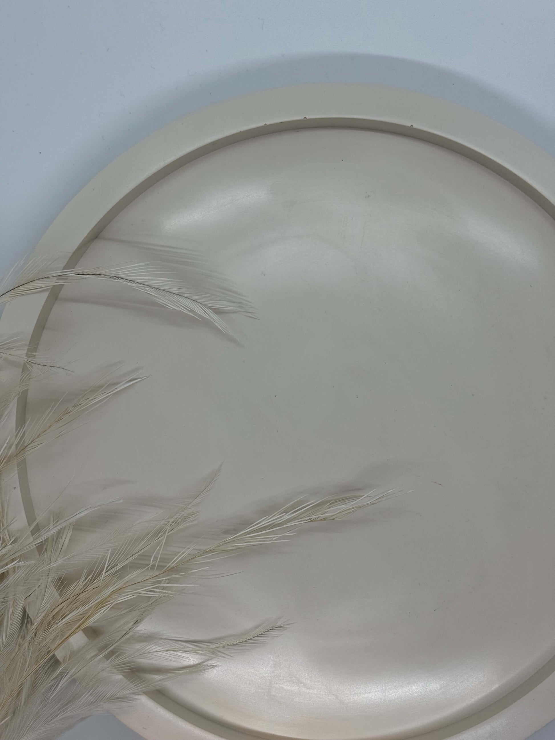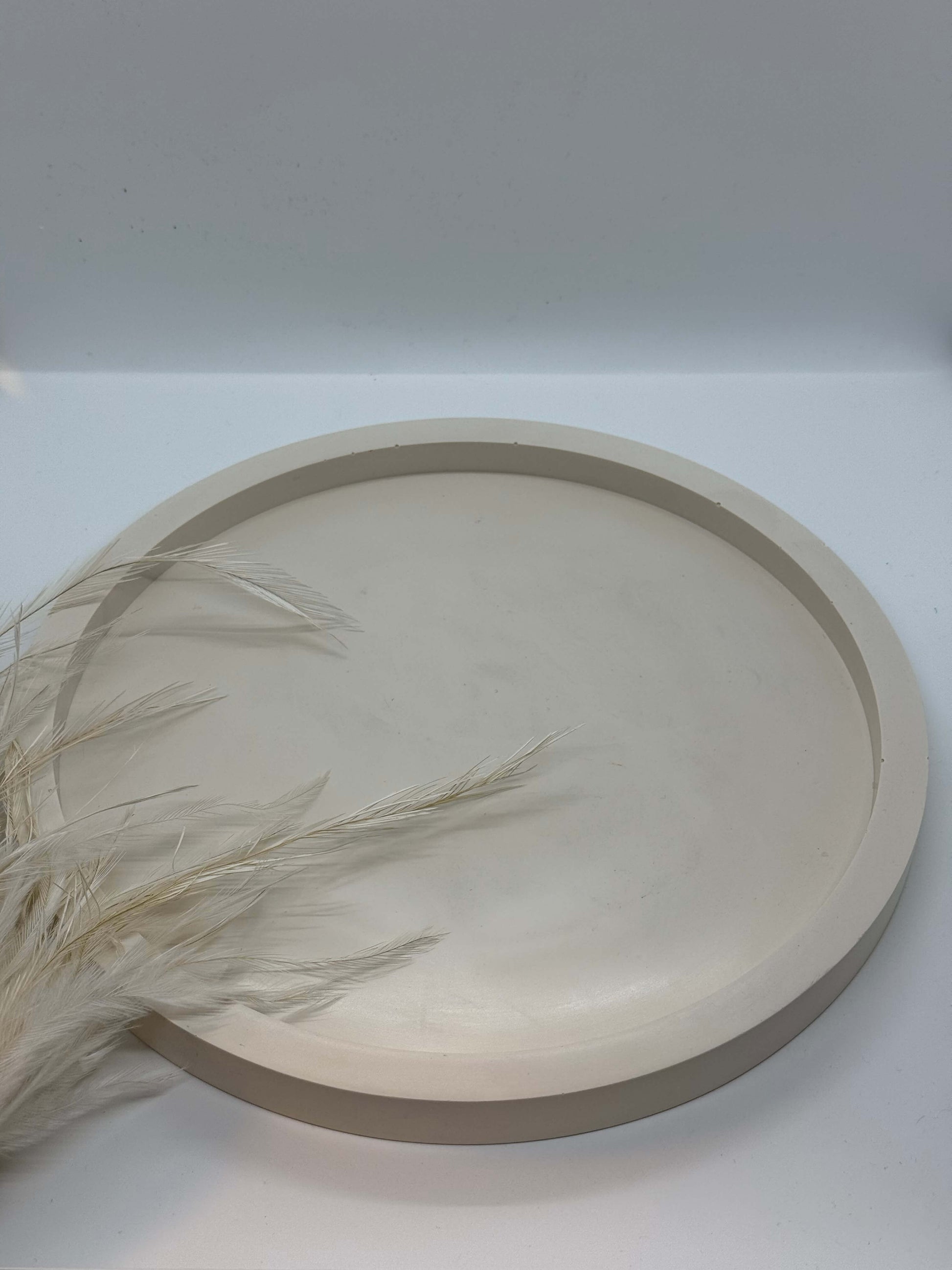 Švelnių, kreminių atspalvių apvalus padėklas, pasižymintis minimalistine estetika ir ramiu, natūraliu įvaizdžiu. Glotnus paviršius ir subtili spalva suteikia jaukumo bei švaros pojūtį, todėl padėklas lengvai įsilieja į įvairius interjero stilius.
