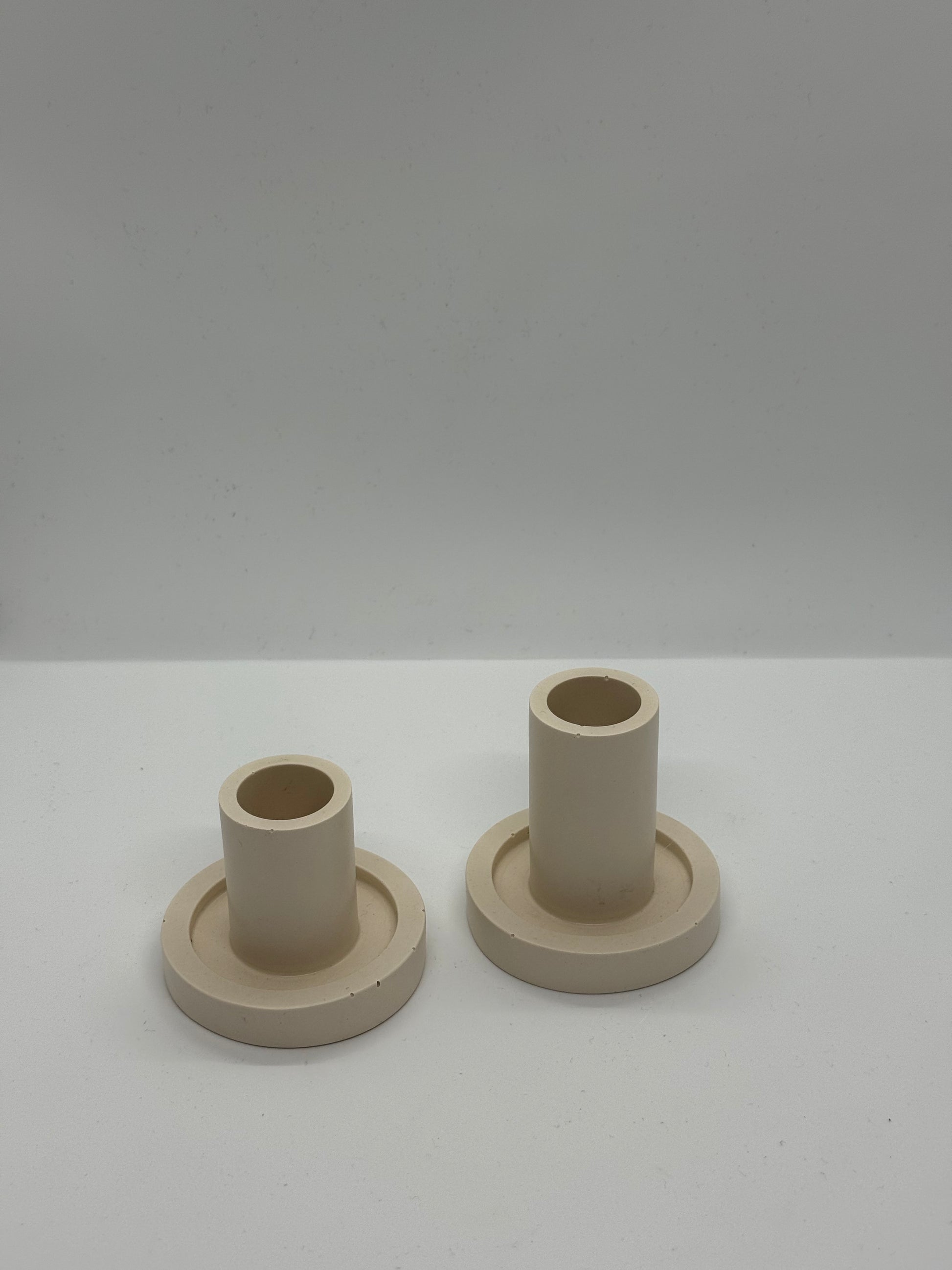 Minimalistinės ir šiuolaikiškos žvakidės, pagamintos švelnaus smėlio atspalvio, puikiai papildys bet kokį interjerą. Jų glotni, tolygi tekstūra ir paprasta forma sukuria subtilų, elegantišką akcentą tiek kasdienai, tiek šventiniam dekorui.
